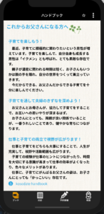 お父さんのための子育て応援アプリ 「子育てハンドブック」配信中です! |