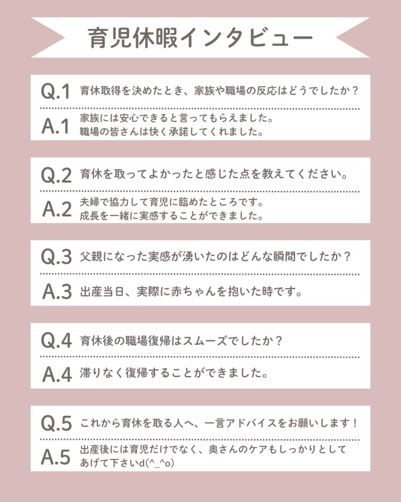 このように、弊社では男性も育児休暇を取得できます!もちろん、女性社員も同じく取得可能です✨
