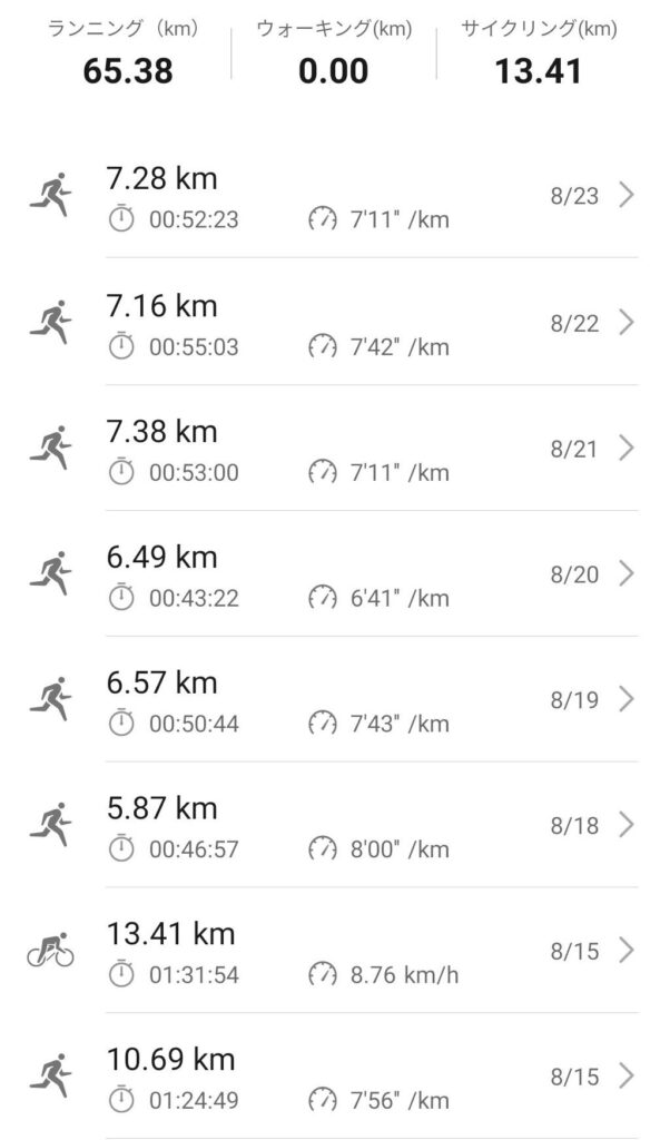 8月になったらやっと身体も慣れてきたようで、5キロを超える位まで